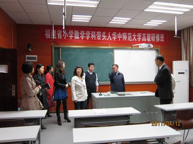 2011年4月12日,河北省高师师资培训中心王福恒主任一行来我校交流考察学习。教育部中南高师师资培训中心常务副主任吴伦敦向客人们介绍了我校教师教 育学院的工作和教师培训情况,并带领大家参观了我校教师教育大楼的教师教育技能测试教室、信息资源阅览室、多功能直播教室等。