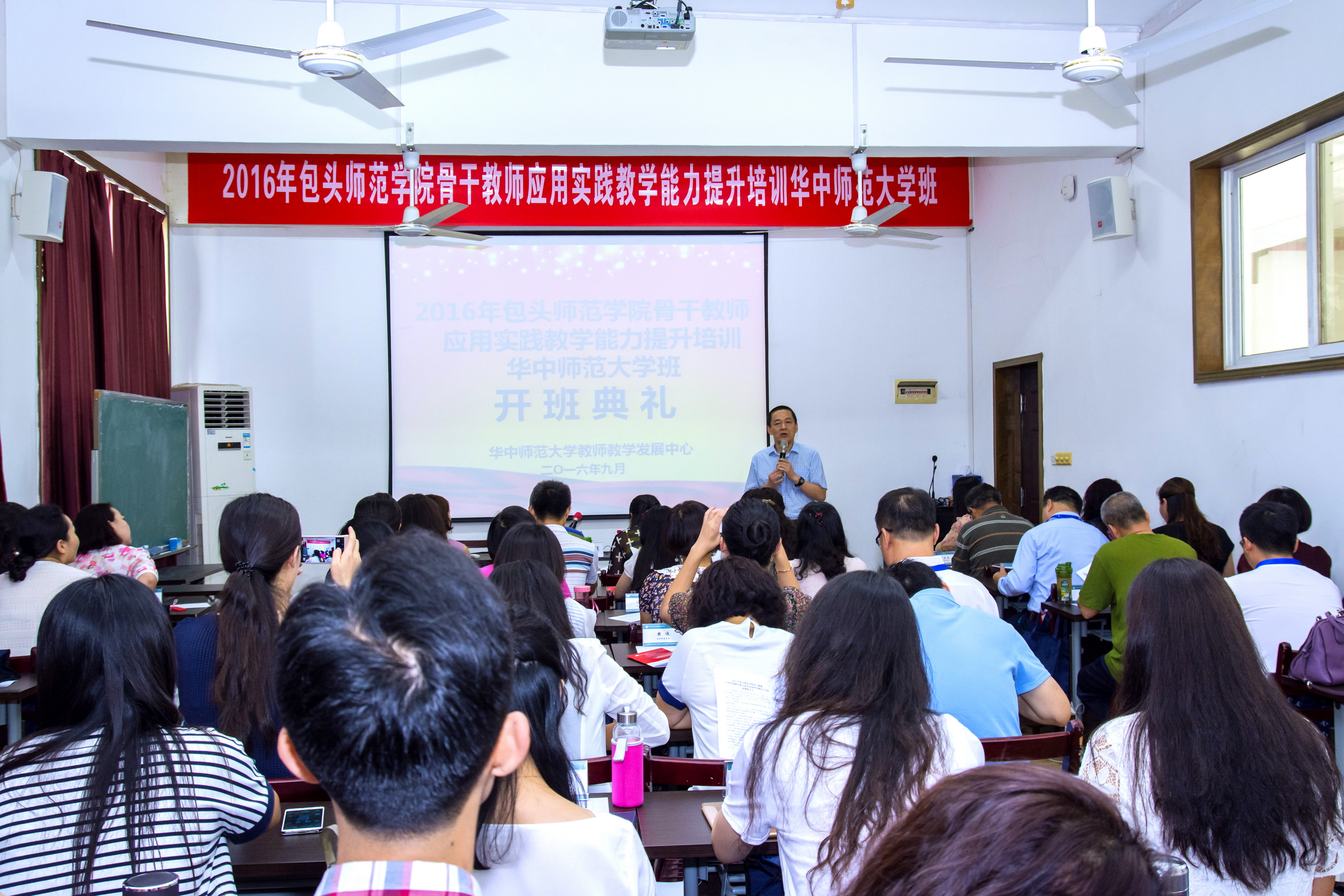 9月19日上午8:00,包头师范学院骨干教师应用实践教学能力提升培训第三期培训班开班典礼在我校教师教育学院大楼A501教室举行。华中师范大学教师教学发展中心副主任吴军其、华中师范大学教师教学发展中心教师沈红云和包头师范学院第三期51名优秀青年骨干教师共同出席了开班典礼。